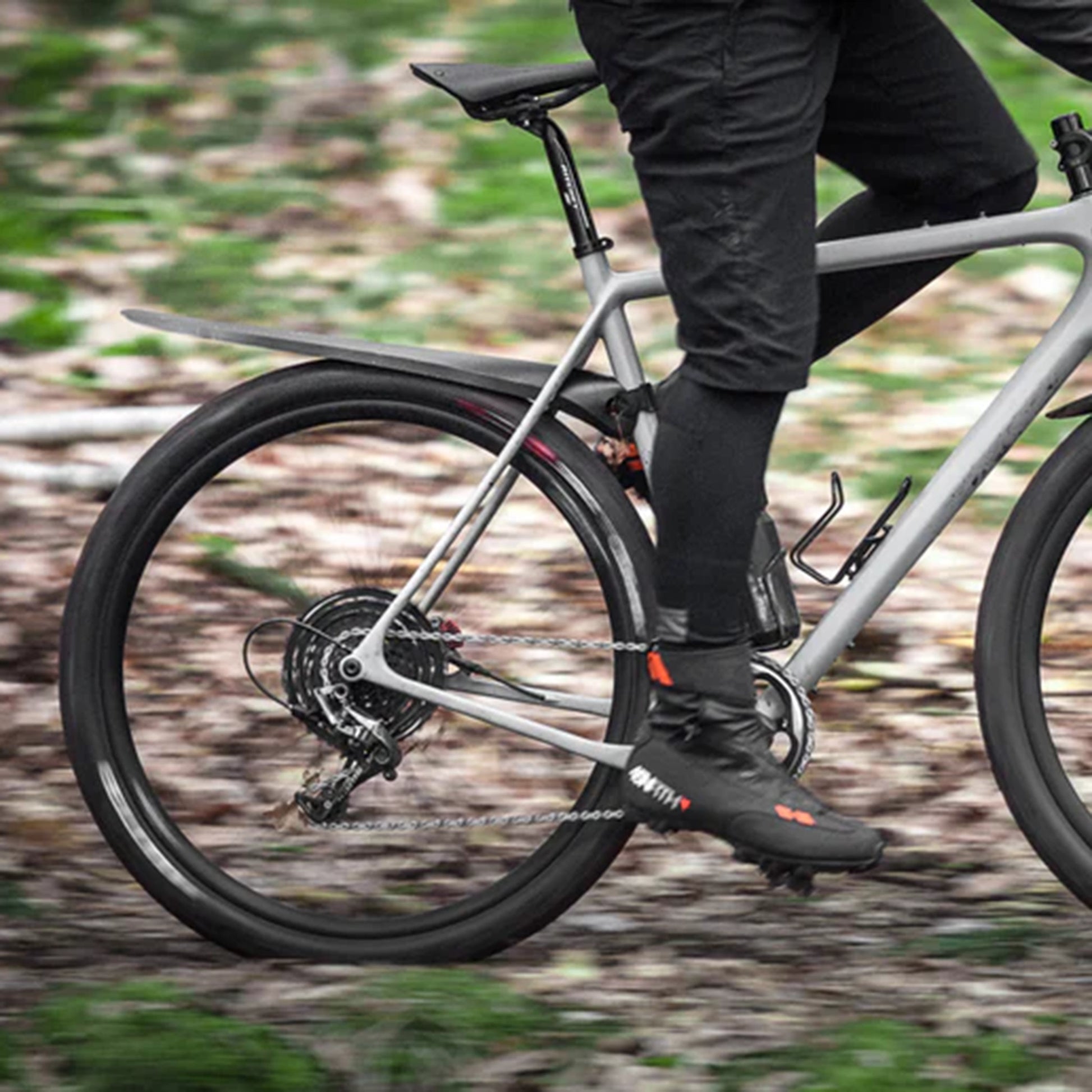 It has been developed for gravel biking but is also a great protector for CX and MTB. With greater length and width, it's well suited for the longer wheelbase normally associated with this segment of bikes. A single midway fold still allows for convenient minimal storage but with maximum sturdiness for the rocky roads ahead.